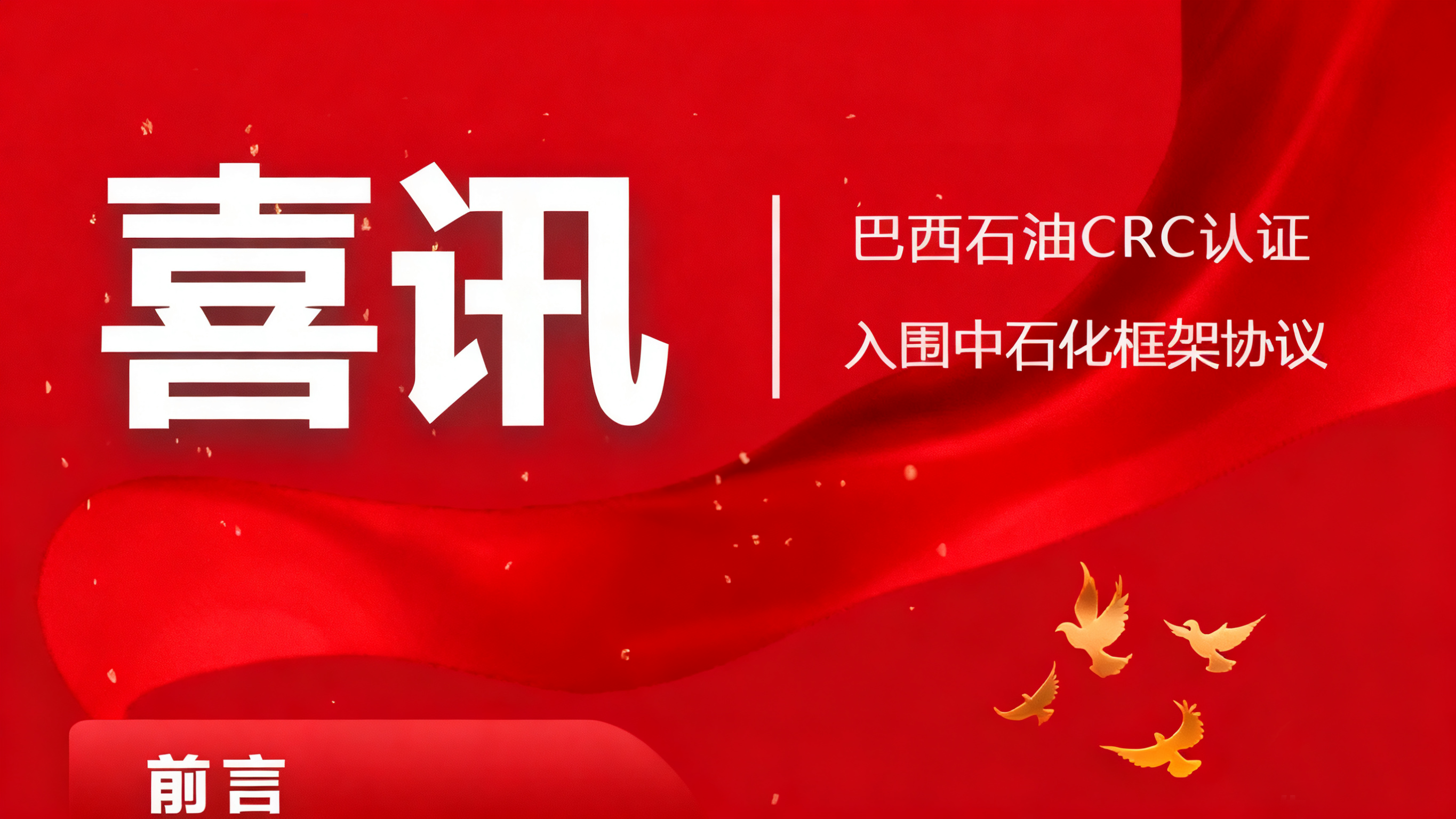 威海化工機(jī)械有限公司近日接連斬獲國(guó)際國(guó)內(nèi)兩大高端市場(chǎng)入場(chǎng)券:成功通過(guò)巴西CRC認(rèn)證,正式進(jìn)入巴西石油供應(yīng)商體系;同時(shí)入圍…